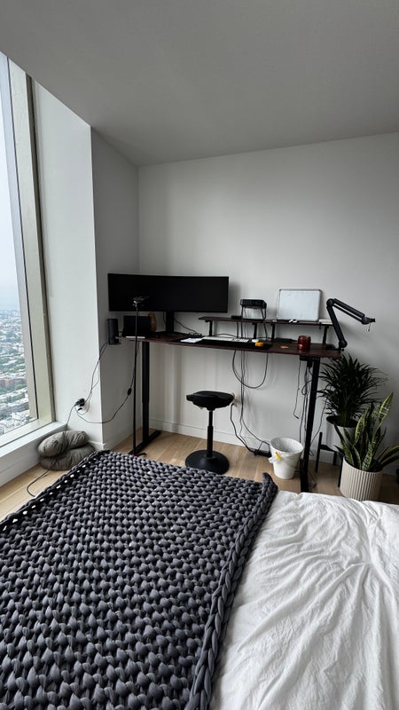 The Room: 🛏️ Queen bed & fully furnished 👕 Walk-in wardrobe for plenty of storage 🌇 Same amazing views 🖥️ Large standing desk 📺 Projector 🚿 Ensuite with walk in shower The Building: 🏢 Luxury high-rise with top-tier amenities 🌇 Two rooftops with stunning views 💼 Business centre & resident lounge 🏋️ Full gym 🌳 Outdoor terrace with bbq, lounge chairs etc.