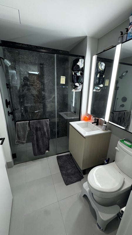 The Apartment: ✅ Super spacious & fully furnished ✅ Fully furnished with 75” TV and washer/dryer in unit ✅ Amazing kitchen with plenty of appliances including air fryer, coffee machine, juicer & more ✅ Huge windows, tons of natural light ✅ High floor with expansive views
