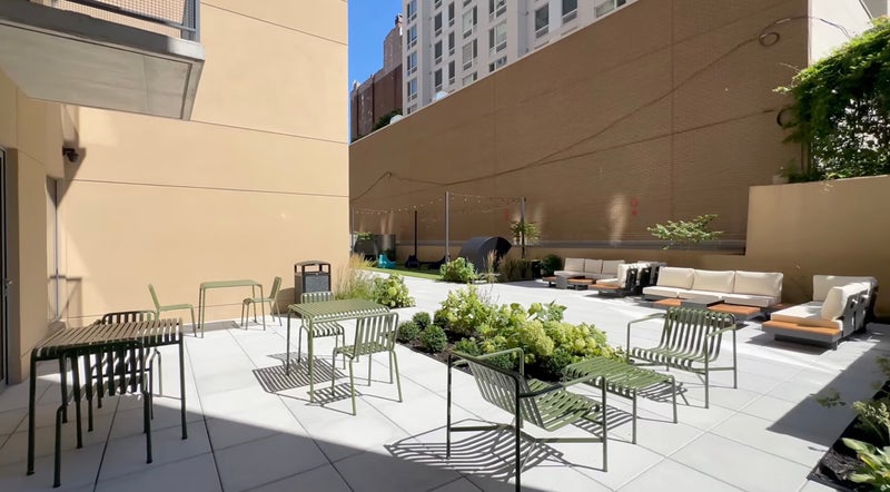 -Amenities included: rooftop terrace, outdoor patio with grills, lounge chairs, gym with sauna and yoga room, movie room, coworking lounge with private conference rooms/solo conference rooms