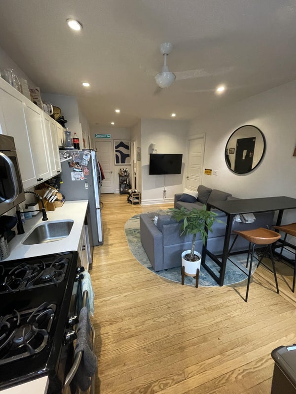 Room is $1,800/month in a 3 bedroom unit (3BR/1BA) with in-unit laundry & dishwasher. The building has a gym, yoga studio, furnished rooftop, coworking space, and lounge. Wifi is free.