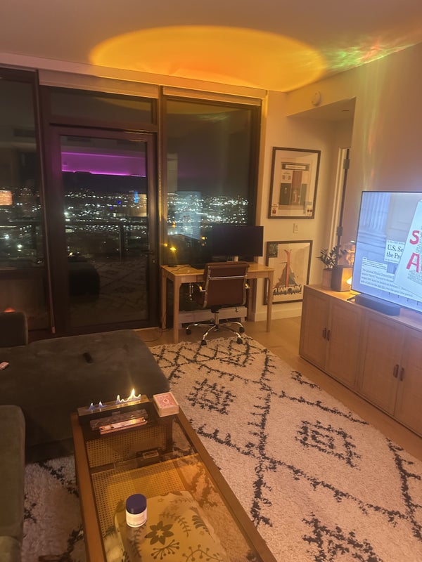 High-floor 1BR with private balcony 680 SQFT Stunning skyline + river views (sunsets are unreal) Floor-to-ceiling windows throughout Fully furnished, modern + clean Sauna + ice bath Spacious living room + large couch + TV Dedicated workspace