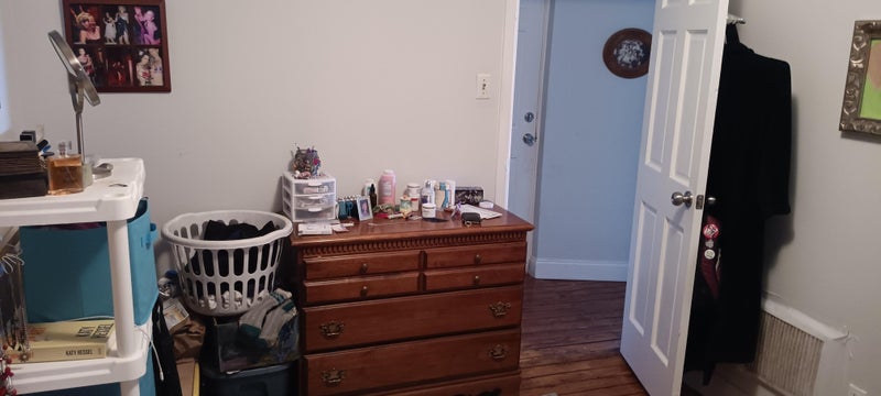 I have two room possibilities. You could take the small room for $900 or the medium size room for $1000. The price of both rooms includes utilities and internet. I typically buy the toilet paper and paper towels and I clean the common areas. I'll give you space in the fridge and cabinets if you want to keep food here. You have to do your own dishes and buy your own toiletries. I would appreciate it if you vacuum your room the night before the trash goes out, especially if you eat in your room. I will supply the vacuum. We share the bathroom - I keep it clean.