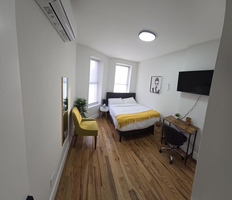 Private furnished room including all utilities!!! 5 min walk to train station! 4 bedrooms • 1 bathroom Private room with coded lock in a spacious shared co living apartment, centrally located between Bed-Stuy and Crown Heights. Features a double bed, TV, workspace, Wi-Fi, and access to shared living room, full kitchen, bathroom, and in-unit washer/dryer. Near transit, only 45 minutes to Midtown including 5 walking! Video intercom . Professional mangment company Including all utilities and Wi-Fi