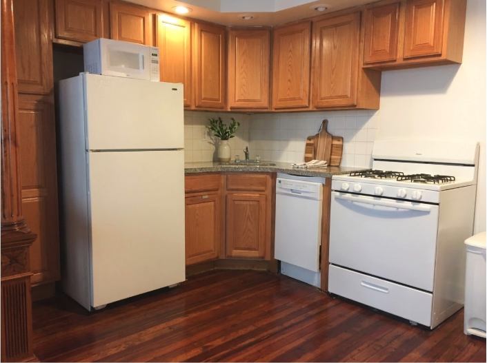 The apartment features: • Beautiful bay-window living room with great natural light • Fully stocked eat-in kitchen with dishwasher, oven, cookware & serving ware • In-unit washer and dryer • Calm, well-maintained shared spaces