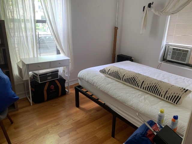 Hello! I am Kayla, and actor, voice teacher and singer. I have a room in my apartment available for rent May 1- June 20 in Prospect Heights, Brooklyn. 5-7 minute walk to Prospect Park, Brooklyn Botanic Garden, The Brooklyn Museum, and The Brooklyn Public Library. 7 mins to 2/3 train at Grand Army Plaza, 10 mins to B/Q train at 7th Ave. The room is fully furnished and has it's own bathroom. This building is a 5 story prewar building. I am an teaching artist/performer who loves to be out seeing theater and taking classes as well as teaching 1:1 voice clients out of the house and 1-2 days teaching my virtual clients from home. The apartment living space is open concept kitchen living room, and there is a third room that I use as office space/home gym.