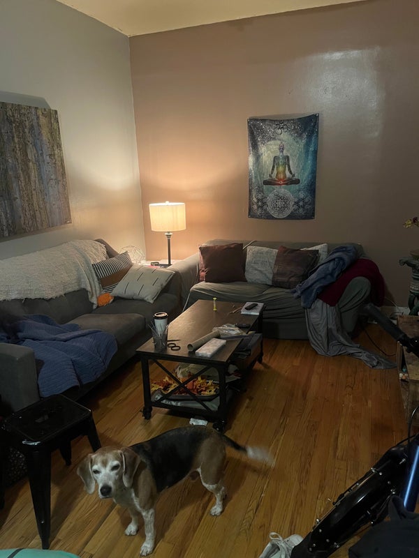 Hi there! Looking for a roommate to replace our current one who is moving out at the end of the month. It’s a small room that can fit a full size bed and a dresser. Perfect for someone who doesn’t have a lot of belongings and wants an affordable place to live. We’re all in our 30s and a laid back social group of people. I have a beagle who is very friendly and doesn’t bark. We’re cool with having guests over, but no large parties.