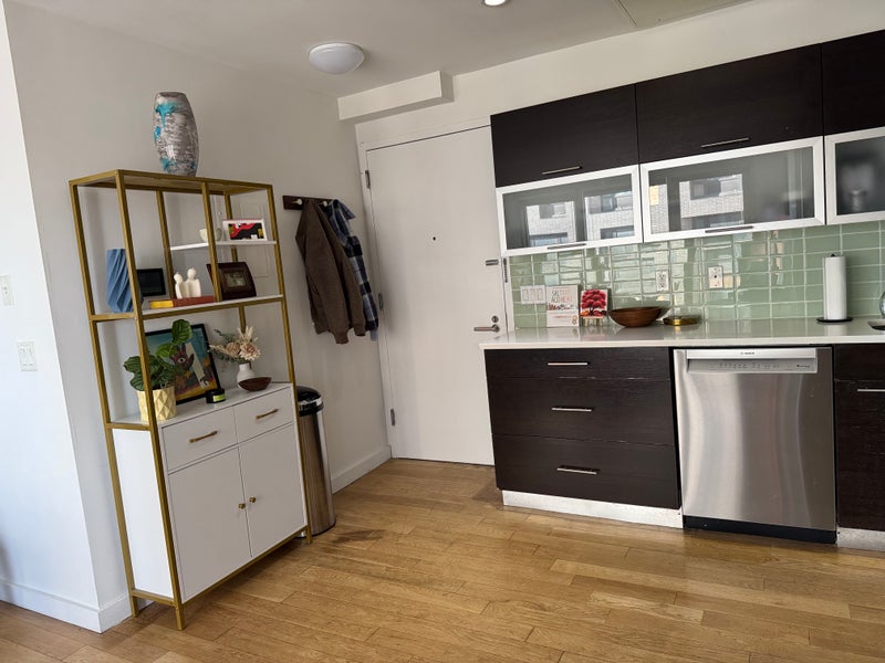 The Building 11-story building with an elevator, doorman, and shared patio area. No stairs to enter. Friendly neighbors, mostly young professionals and some families. Maintenance requests are handled quickly. Laundry machines and a little neighbors' library in the basement.