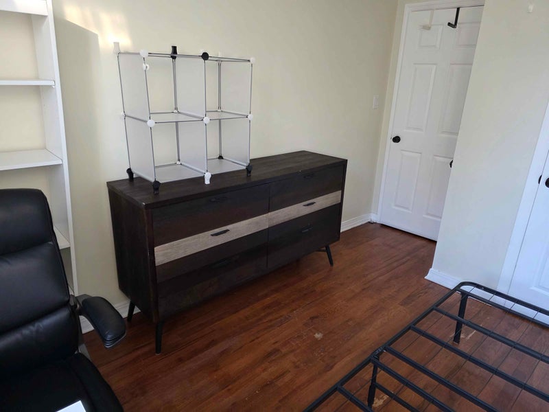 Offering a cozy, mostly-furnished bedroom (BYO mattress) with beautiful natural light and south-facing windows giving you a view into the backyard.