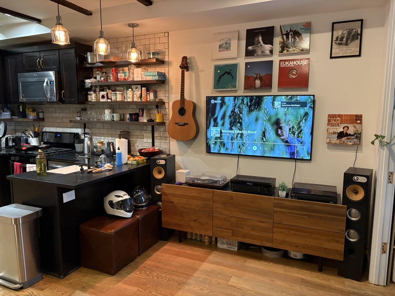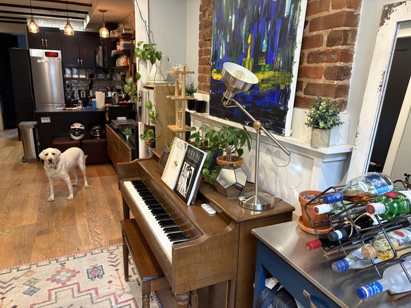 Our house enjoys listening to records, watching sports, and playing with Bonnie (Mattβs Labrador). Also, we hire a housekeeper once a month to help keep our space clean & tidy.