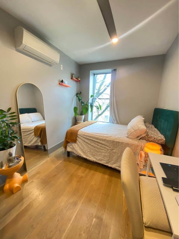 Gorgeous Master bedroom in one of most desirable parts of East Williamsburg. Has private non-attached bathroom for your convenience. Right between L/G and J/M train stops. Somewhat flexible lease terms, with 2 other roommates already living in the unit. Both male, profession with hybrid work schedule.
