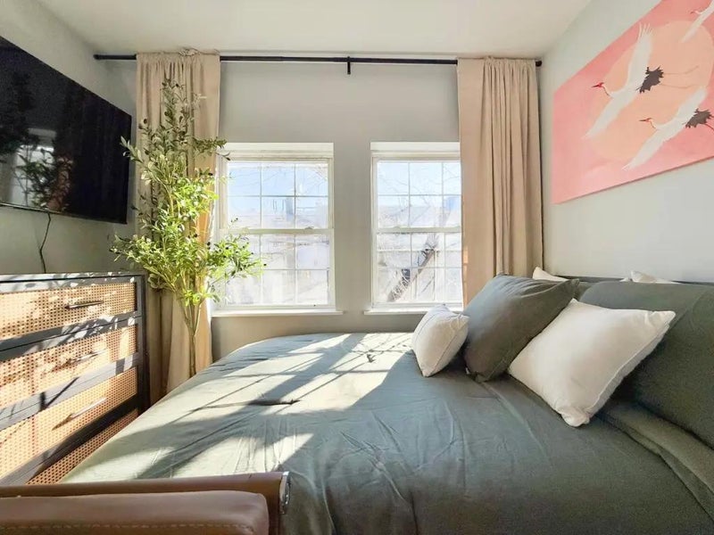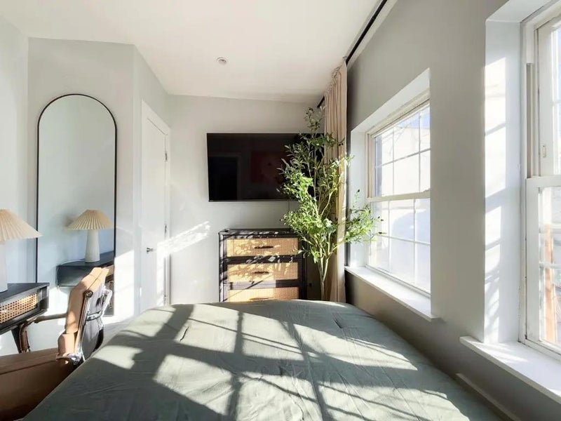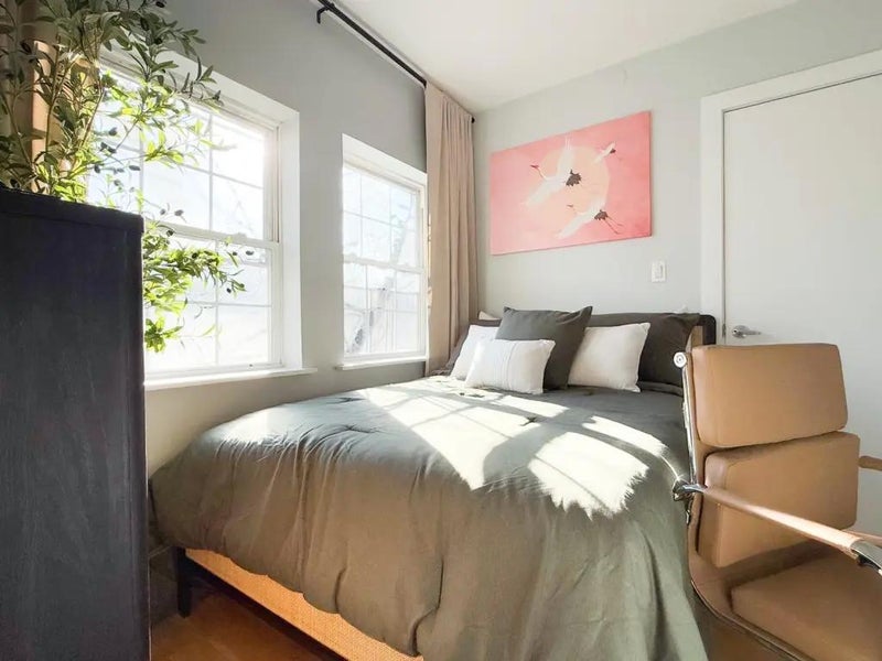 – Bright bedroom in Williamsburg, with high ceiling and 3 windows, right on Scholes St. – Room has an HD TV, dresser, desk, chair, bed, Wi-Fi and a closet. – Williamsburg is the most sought after neighborhoods in NYC, top destination for restaurants, bars, festivals, just coolness. – Apartment is located near everything you need. – Laundry is on the same block. Right next to the building. 1 min walk – We are looking for someone who is clean, responsible with good energy. – 17 min to Manhattan, 3 min walk to the L train – Utilities are $170 per month (electricity, internet, gas, heat, hot water). – $40 for monthly cleaning. – Note:(Comforter and pillows are not included) – There is a one-time room inspection, cleaning and administration cost of $175
