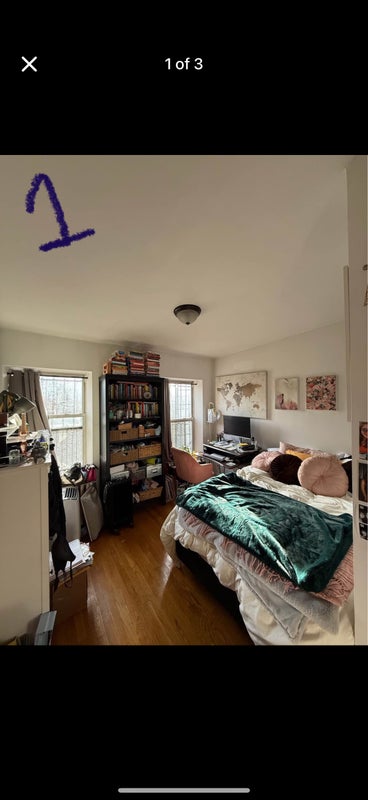 🛏️ room details All bedrooms fit a full bed, desk, and dresser comfortably. All rooms have a closet and big windows. 2 bedrooms are in the back of apt and have east-facing windows, and the other bedroom is at the front of the apt with west west-facing window.
