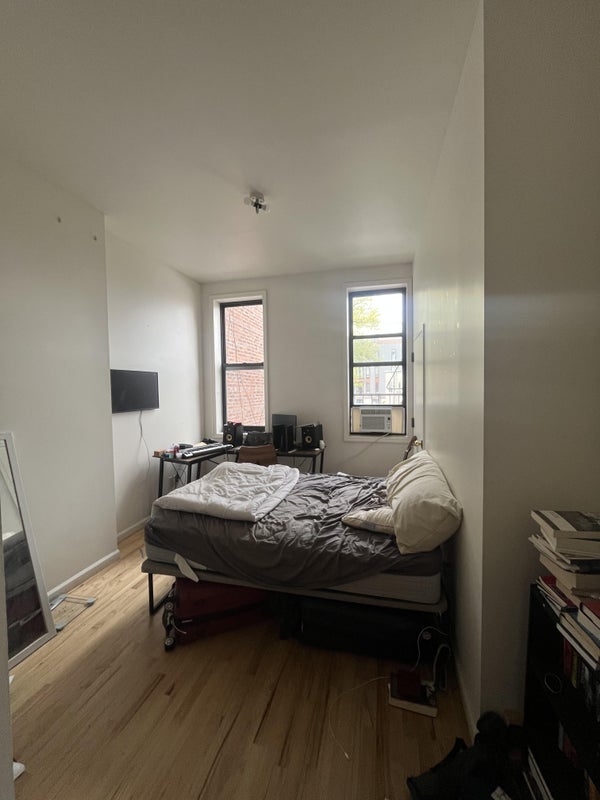 The room is large, very quiet, and faces away from the street, so you don’t get train or traffic noise. The other bedroom is on the opposite end of the apartment, so it feels pretty private.