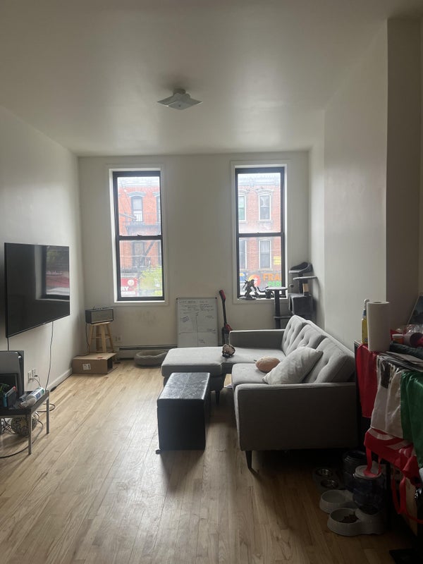 The apartment is a 10-second walk from the Grand St L stop. It’s in East Williamsburg, right near a ton of great bars and about a 10-minute walk to Cooper Park. It is about a minute walk from a new Whole Foods as well.