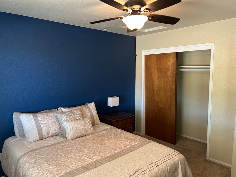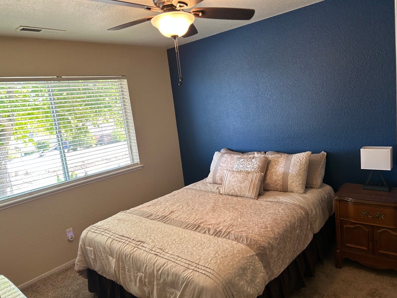 Beautiful views overlooking the mountains & New Hogan Lake dam, In the La Contenta area of Valley Springs. Quiet, friendly neighborhood, only a short distance from town, grocery stores, restaurants, the golf course, hiking, fishing & swimming at the lake (about 5 minutes away). Centrally located within driving distance from several hospitals. 3 bedroom home, no pets, parties or drugs. Rent is for one individual (no couples please). 1 furnished bedroom, queen size bed & closet, dresser, night stand w/lamp & mounted TV. Amazon, Peacock & Tubi available free. Private bathroom w/ bathtub & shower. Full size private refrigerator provided. Amenities include: full access to kitchen, living/dining room, washer, dryer, porch, bbq, free parking on premises. Rent & utilities include water, sewer, electricity, gas, WiFi & garbage service. First months rent $1,350.00 per month + $1,000.00 security deposit (refundable if home is left in the condition you moved in) w/month to month flexible terms. Traveling nurses/professionals preferred. Background check may be required.