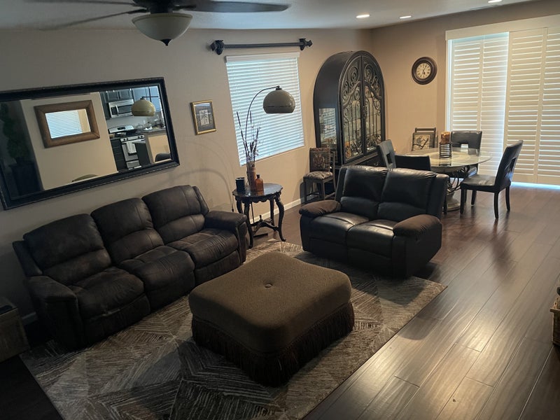 Rent a furnished bedroom and bathroom, plus an office, garage space and have access to the kitchen, laundry facilities, and back patio in a home that is occupied part time by the owners. Owners are at the home once every 5-6 weeks or so for about 4-5 days. When owners are not there, tenant has access to the entire home, except the owner's suite. Condo is in a gated development that is fairly new, well run, quiet, with abundant amenities including pool, jacuzzi, BBQ area, and fitness room. Ideal for student, or senior looking to downsize.