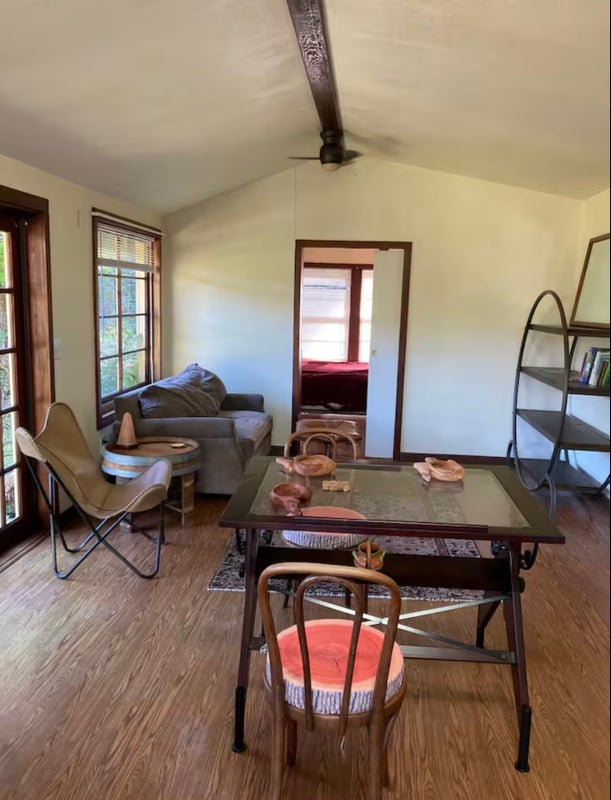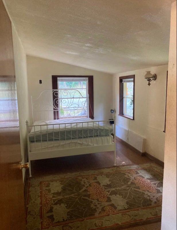The room for rent comes furnished with a queen bed, dresser, closet, desk and chair. The bathroom, kitchen, and living room are shared and also fully furnished. The bathroom comes with a washer and dryer as well. Access is down a mile long dirt and gravel road so a car is necessary. The property is within a forest and very secluded. I’m looking for preferably a female roommate who is clean and college aged. I’m a very clean and orderly person and would like to have someone who is the same way.