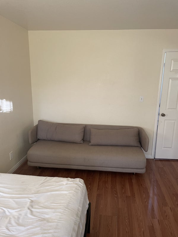 My partner and I are offering our spare bedroom for rent. It is very spacious. Has a large closet and large window. Private shower Right outside of the room. Shared patio, kitchen, living room. Wifi, gas, electric, water all included in rent(Also included: Netflix/Hulu/paramount+/sling/ prime/)Strictly street parking. Bed and fan in picture can be left for new roommate if needed. We have 3 small dogs and 2 cats.