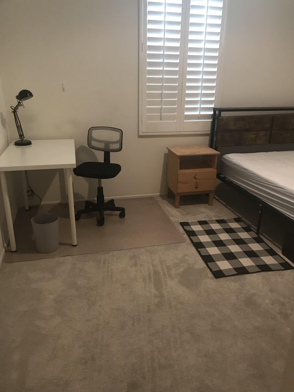 One larger room available for rent in 10 year old four bedroom, three bath townhouse located in the Rosedale Community in Azusa, CA. Location is walking distance to Citrus College, APU University, and the Gold Line 'A' Metro Station, as well as retail and food establishments. The room ($1050.00/month) is located upstairs. The bathroom and second refrigerator is shared with a 62 year old male who is quiet, respectful, and clean. Tenant has full access to living area, pantry, kitchen, laundry area, porch, and the community pools, jacuzzi, barbecues, exercise area, large park, etc. Room may be furnished as needed (double bed, dresser, two bed tables, writing/ computer table, desk lamp, chair), and has newer carpet. Suitable for one person. Best suited for a person who prefers a quiet environment, occasional interaction, and is appreciative of the property and privileges provided, and able and willing to keep all shared areas, as well as any personal space, clean and in good condition. Prospective tenant must be considerate and respectful of other tenants and quiet times. Utilities, fast wifi, and all basic house supplies (Laundry, Bathroom, Kitchen, Cleaning) are included in the monthly rent. Short term acceptable, or 6 month lease followed by month to month. References required, including work or school. No credit check. Community street parking. Deposit of $900.00 required to move in.