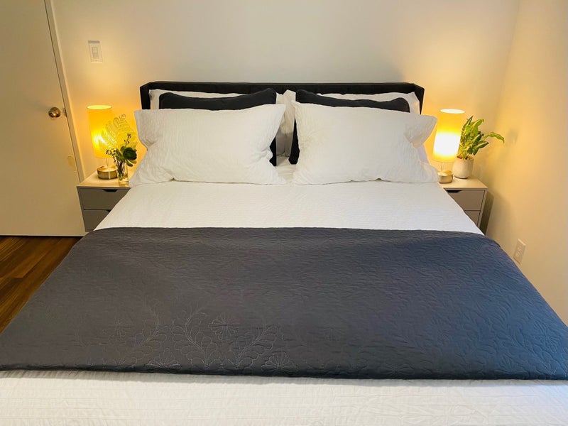 PERKS: *Large master's bedroom *Private bathroom *Enclosed shower outfitted with Rainfall shower system *Lots of closet space + shelvings! *Experience the ultimate relaxation with a plush bed featuring a memory foam and alternative down mattress topper* Quiet air-conditioning * Ceiling fan* Gas* Water* Wifi* Desk