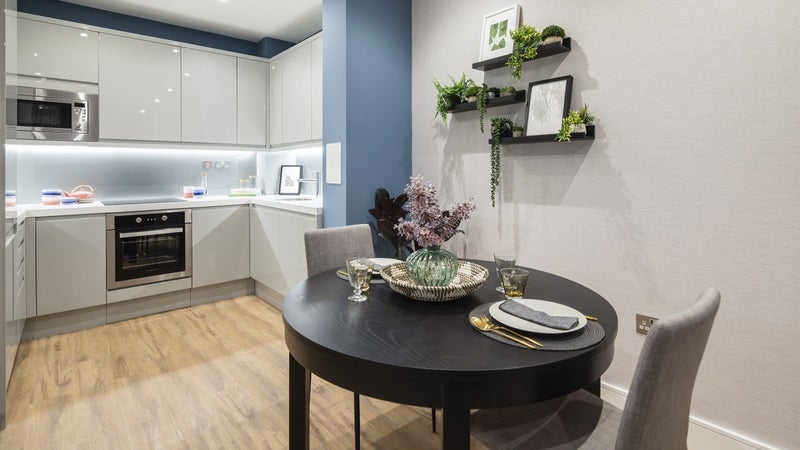 Residents of this studio apartment will be welcomed with a contemporary designer kitchen complete with reconstituted stone worktops, a white glass splashback and integrated appliances which will include a fridge with an ice box. Meanwhile, the property will boast oak plank-style flooring throughout except the shower room which will feature large format white, marbled porcelain tiling. The services cupboard will house the washer/dryer for extra storage space.
