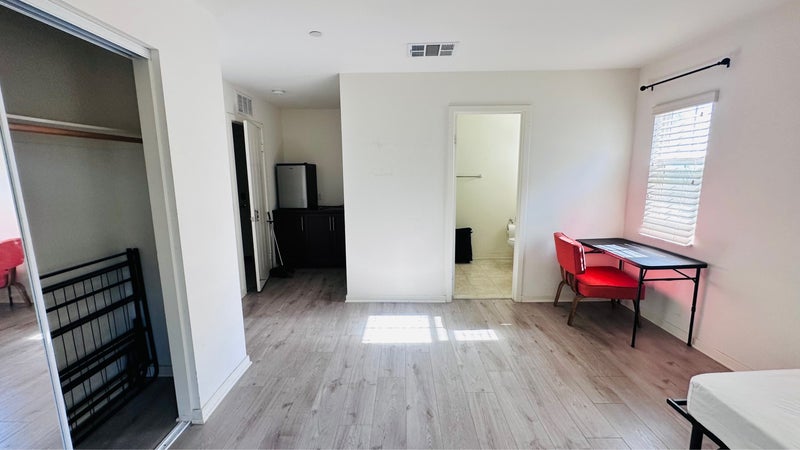 One Room with private access. Own bath inside the room. Location: 1mile from Claremont Downtown and Pomona College/ KGI. Close to LaVern and CalPoly. Western University. Rental includes ALL utilities under Normal usage. For one: $999 For two: $1030 No kitchen access only E-pot simple cook. We can wash dishes for you. small washing machine in the bath for laundry. For working professional or Student. We have a large indoor dog, not good for fur allergies. The Room has good privacy, only yourself at 1st FL. All other residents on 3rd FL. 2nd FL is kitchen and living room. Our desire is Not meeting each other very often. Street parking free 24/7. Half month inside community. Community Pool. 6mo lease then M2M.