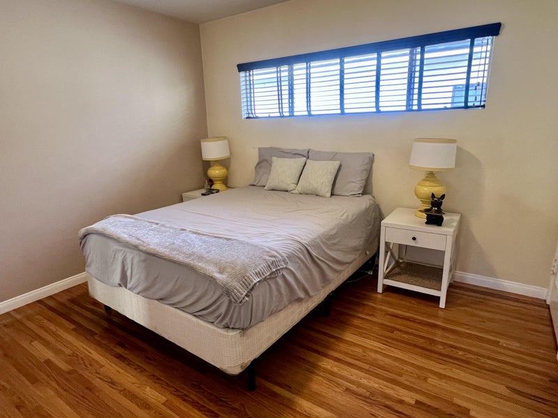 Rent: $1,300/month includes: • Furnished bedroom with queen bed (can be removed if preferred) • Private full bathroom with double sinks & soft-close cabinetry • Spacious kitchen with stainless steel appliances (dishwasher, microwave, stove, refrigerator) • In-unit washer & dryer • Central heat & air • Two fireplaces (gas + wood-burning) • Weekly gardener • Alarm system • Ample street parking