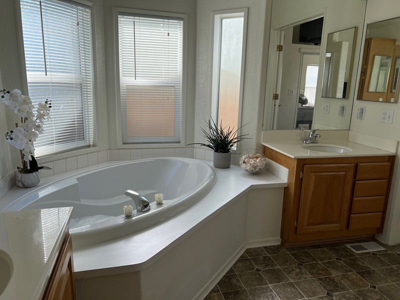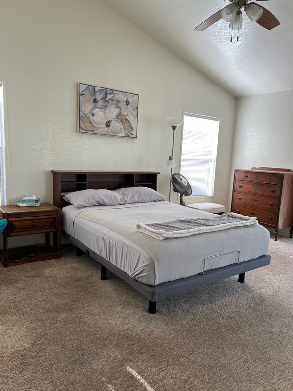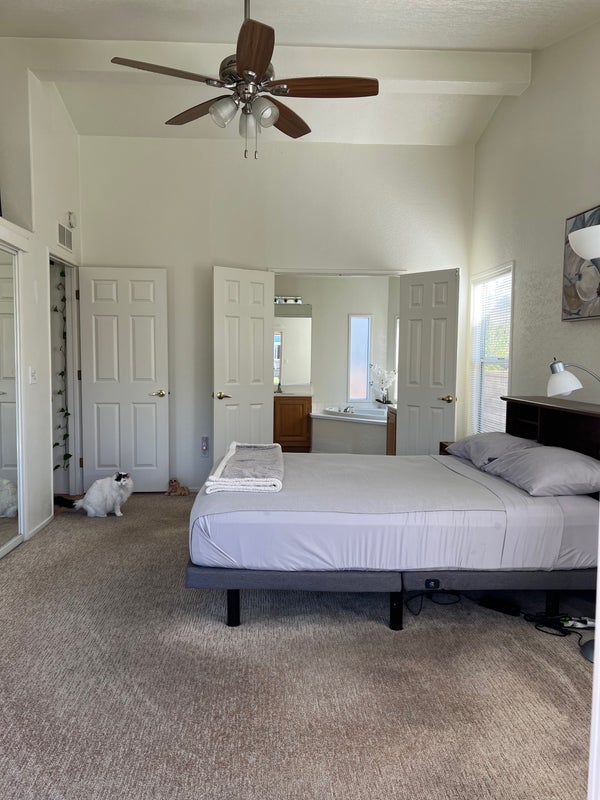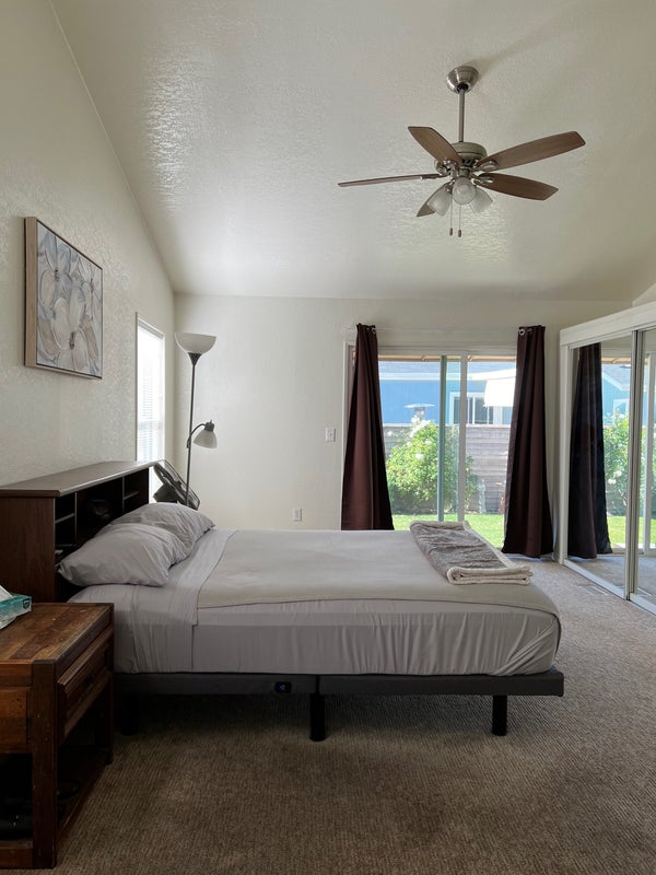 Large main bedroom w/en-suite bathroom, slider leading out to backyard Looking for one financially stable quiet person who is responsible, respectful of shared spaces & keeps area clean, does not smoke or use drugs, keeps guests to a minimum, & is kind to animals. Housekeeping included. This will be a month to month rental.