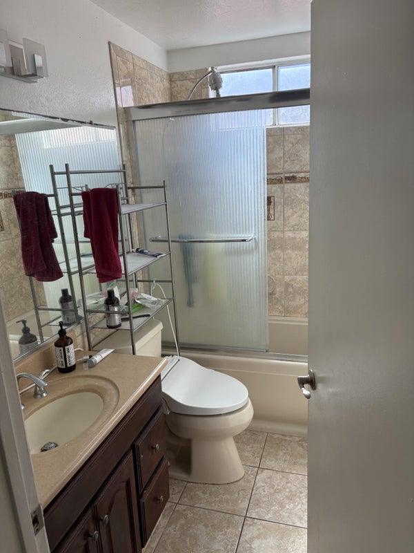 Renovated condo with three bedrooms, two and a half bathrooms and a common area for guests. Common area includes kitchen with sink, stove refrigerator and dishwasher. I occupy one room upstairs and the other bedroom is upstairs ready to be occupied. Full bathroom is right outside the bedroom entrance.