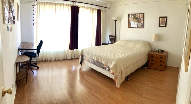 The room is furnished and spacious, about 13x12 ft. and the bathroom is next to it. It’s in a nice 2 bd./2 ba. apartment, clean and well maintained. There’s laundry in the building and street parking is not a problem.