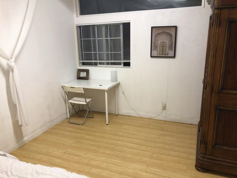 · Spacious and bright bedroom · Furnished with bed, desk, chair, and closet—move-in ready · Shared kitchen and laundry, light cooking okay