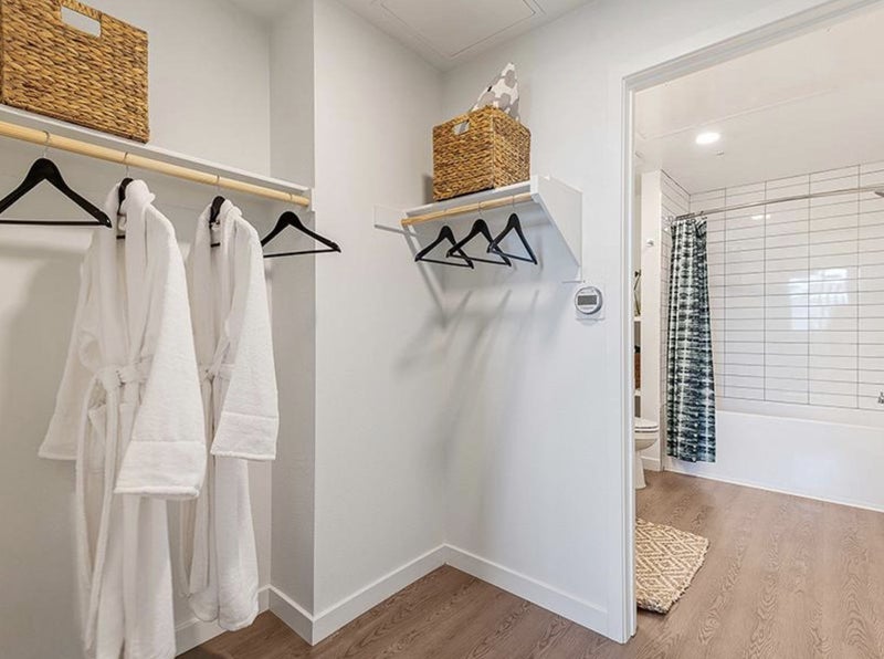 You get your own bathroom and walk in closet which is nice. Laundry within unit. Large TV in living room. We are on the top floor so we get a nice view of the sunset. Small balcony.