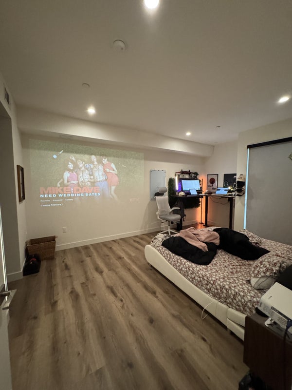 Huge bedroom Large walk-in closet Double vanity bathroom Furnished living area Brand new construction Rooftop deck with views