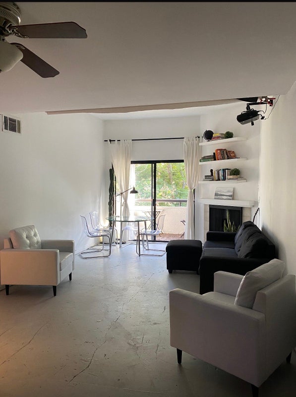 Apartment amenities include: • Balcony facing trees on San Fernando Blvd • Fireplace • Living room & dining area • Fully equipped kitchen • In-unit washer & dryer • Dishwasher • Private parking garage • Gym • Pool • BBQ area • Jacuzzi