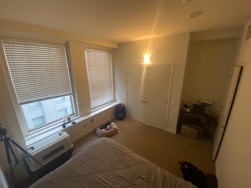 The apartment has tons of sunlight, lots of storage, in unit washer/dryer, and a really big kitchen (like the ones in the cooking shows)! The building has a gym, lounge, rooftop with a jacuzzi, and more amenities. Pets are welcome with a $50/month pet rent.