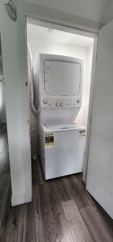 The kitchen offers top of the line stainless steel appliances, stove, refrigerator, dishwasher & microwave. Also includes washer & dryer.