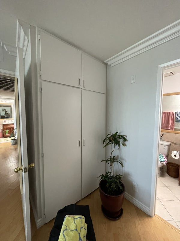 This room is incredibly spacious, gets a lot of light from large windows (great for plants), has large mirrored closet and shelving, and has its own private bathroom within the room. It will not be furnished, and the cat pictured does not belong to me, unfortunately! The apartment has two floors, with the kitchen, living room, and balcony on the first floor and the 2 bedrooms and bathrooms on the second floor.
