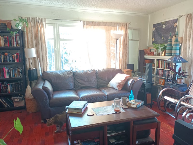 Private room with shared bathroom in two bedroom house. You'd be living with me (30s F) and a very lazy and affectionate cat. The house is one of three units on the property with the landlord living on site. There is a fenced yard that is shared with the landlord and tandem parking in the driveway. This is a month to month sublet - available May 1st, flexible move in date through June 1st. Preference will be given to anyone planing to stay 6+ months. First month rent plus $1,000 deposit due on move in. The room will be unfurnished. I am looking for one person only, any gender is welcome. Would be willing to consider one pet.