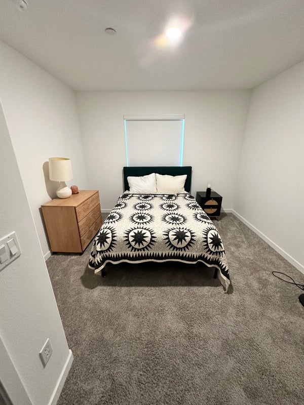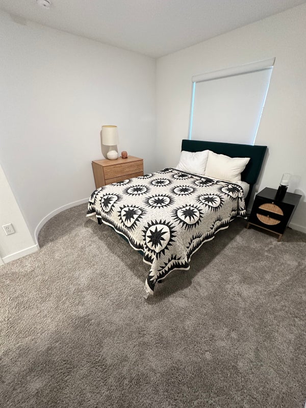 - Fully furnished: full-size bed, dresser, nightstand, and closet.