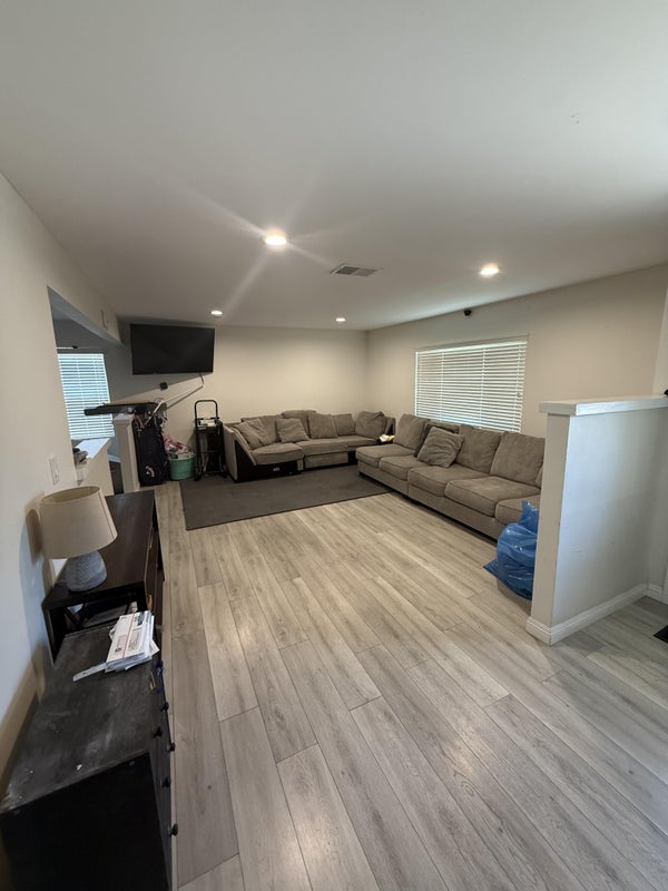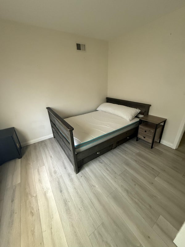 No smoking inside, no pets. Use of kitchen, laundry in garage, and backyard. Fridge in the garage and kitchen to share--would prefer you have your own mini fridge, however there are two large fridges (one in the garage and one in the kitchen to share). Full bed included--shared bathroom with only 1 other person.