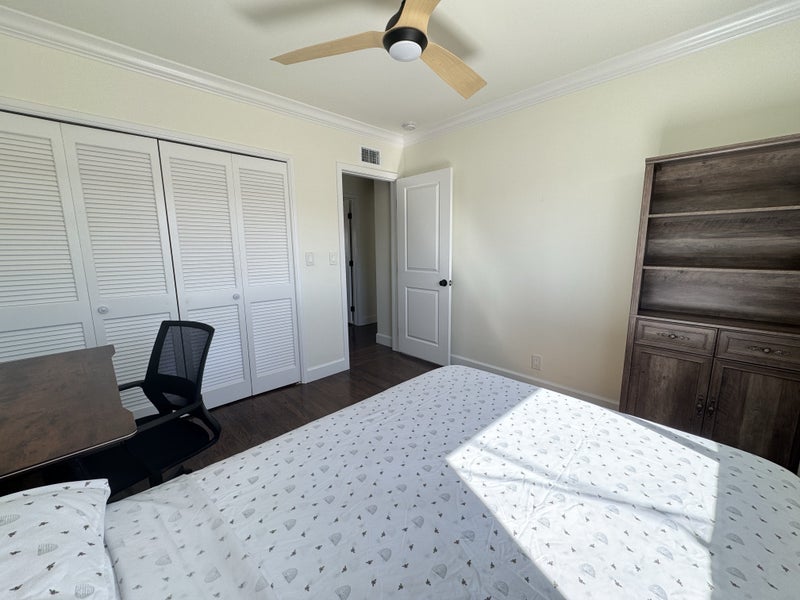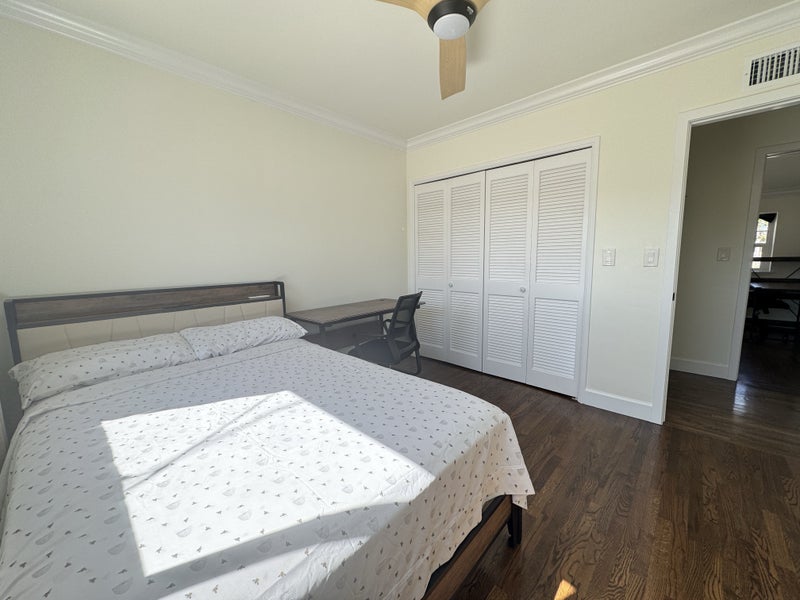The Room ( App. 140 Square feet): Natural Light & Breeze: Enjoy the sunshine pouring in through the large window, complete with a stunning community view. Shared Bath: You will share the bathroom with a female housemate. Furnished with Love: Brand-new Sealy 13.5’’ full-size bed with a plush pillowtop mattress, a set of brand-new desk and a chair for those late-night study sessions (or Netflix binges), and a 71.4“ Tall Bookshelf with Drawers & Cabinet, 5-Tier Floor Standing Bookcase with Storage Doors for your essentials. Huge Closet: From wall to wall, you'll have plenty of space for your wardrobe.