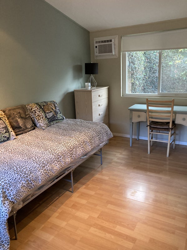 Beautiful, spacious furnished room for rent with private bathroom, including all utilities, Wi-Fi, Cable-TV Ready, and free in-house laundry facilities in Granada Hills for $1549 per month. Room is furnished with high ceilings with lots of natural lighting. Wood floors. A/C and heat. In-room fridge & microwave. Huge backyard with Hollywood-style pool. Great location. Near all major freeways; the 5, 118, and the 405. No pets. (We already have one very nice dog.) Room for rent is available May 1st.