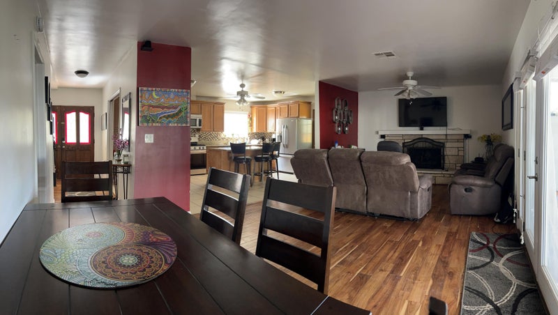 **Highlighted features** Access to common spaces: The kitchen, has a refrigerator, microwave, ample space for your things. You will also have access to a large yard and other common spaces in the house. The room is furnished with a bed, dresser and walk in closet.