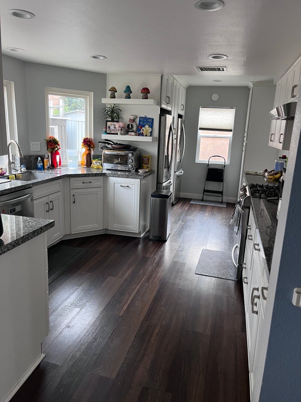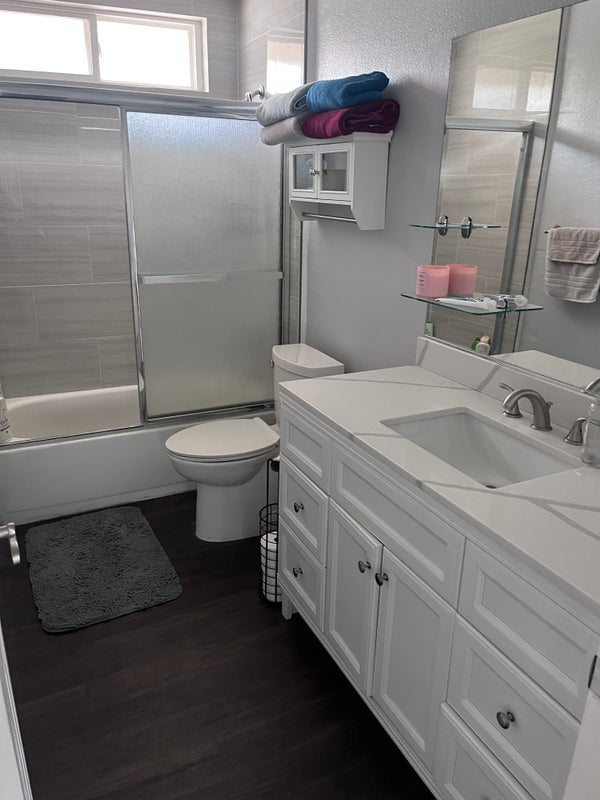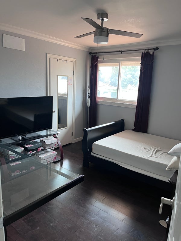 Furnished room for rent in Granada Hills, CA, located in a clean, quiet, non-smoking home. Room includes a private bathroom and walk-in closet. Access to kitchen, refrigerator, stove, and washer/dryer. Shared utilities include electricity, gas, water, and trash.
