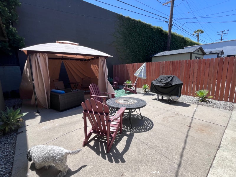 SHARED SPACES: * Large fully fenced backyard with gazebo, patio furniture, and BBQ — the kind of private outdoor space that's nearly impossible to find in Culver City, especially for dog owners * Warm living room with fireplace * Dining nook * Kitchen * In-unit washer/dryer