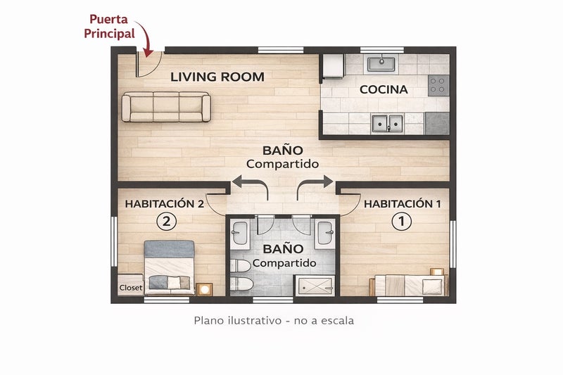 Incluye: ✔ Lavandería en el edificio ✔ Cocina y baño compartidos ✔ Departamento tranquilo y limpio ✔ Ambiente respetuoso 🚫 No drogas