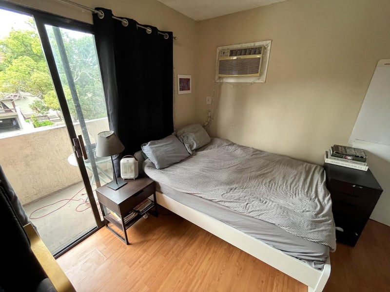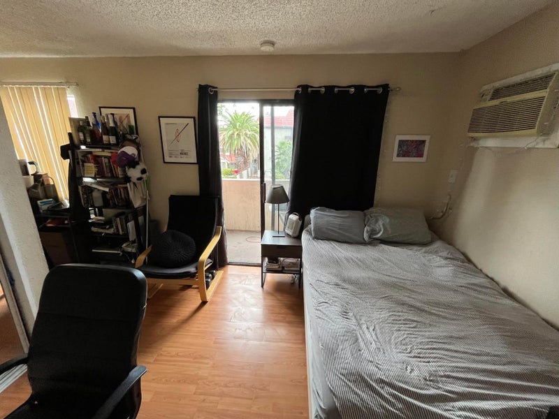 Bright studio apartment in East Hollywood / Thai Town. Steps (5-minute walk) from the Metro station and within easy walking distance to grocery stores, a supermarket, and local cafés. Features include an independent balcony, open living/sleeping area, kitchenette, and street access near public transit. Great location for commuting and local dining.