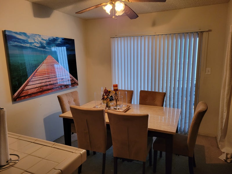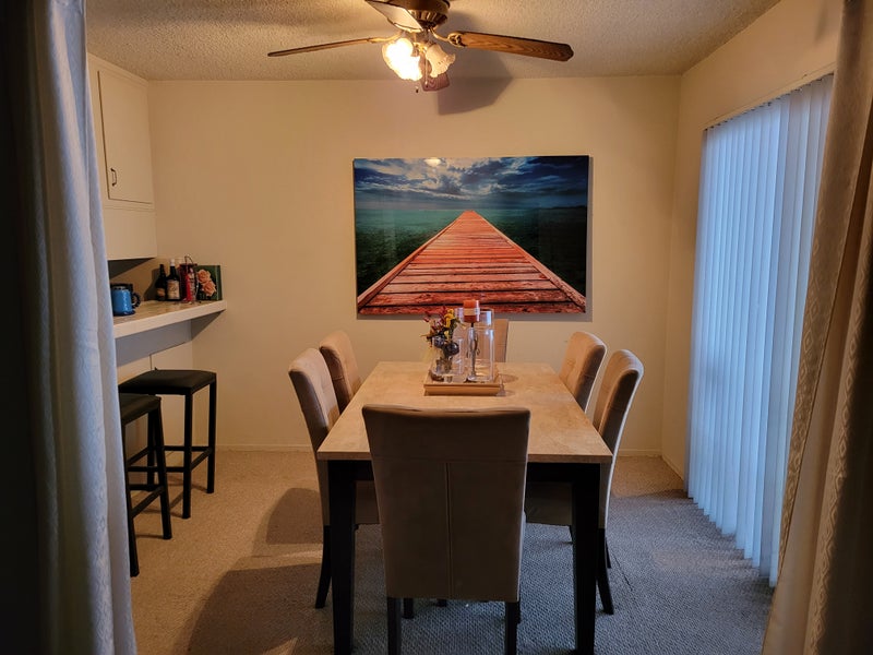 Shared access to kitchen, living room, and dining area.