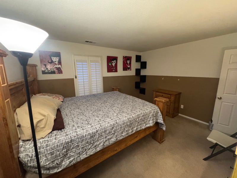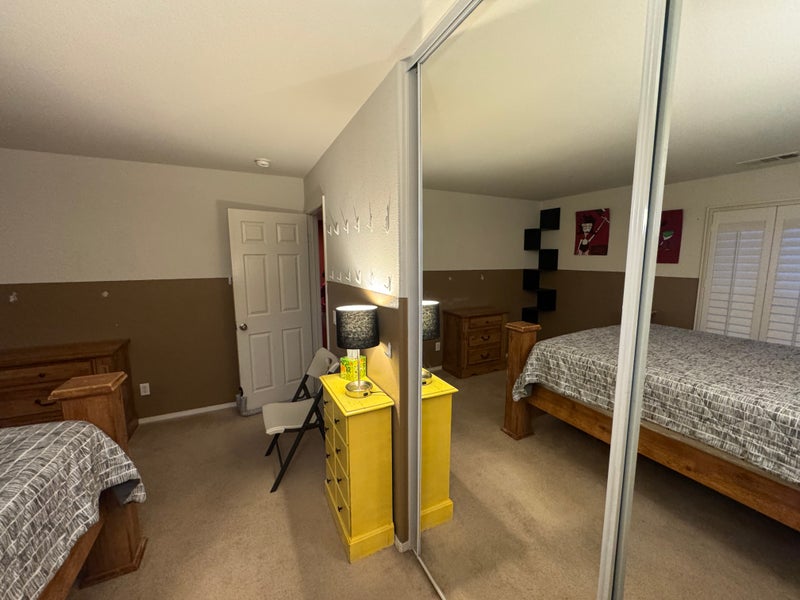 West Palmdale furnished room with calking bed with two night stands. Close to all major engineering firms ( Lockheed, Boeing ect.) close to AV mall and freeway. No pets please. One person occupancy. Feel free to contact René with any questions. LGBTQ Friendly. All utilities included.