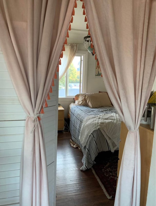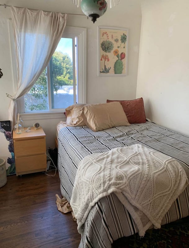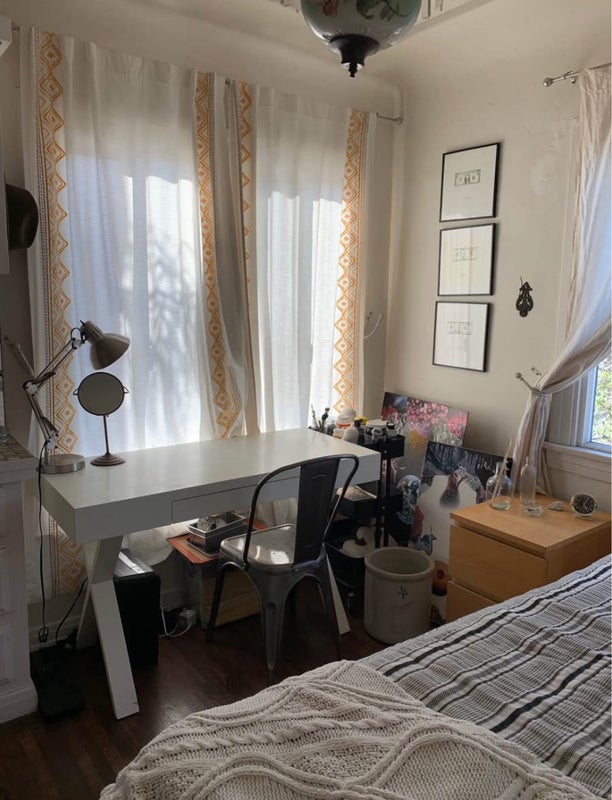 Hello! We are two busy ladies in their thirties looking for a new roommate for the front bedroom of our apartment. The bedroom has a door off the kitchen and the other side off the living room has a room divider so thus the reduction in price. However you can add anything you would like to make it more private.
